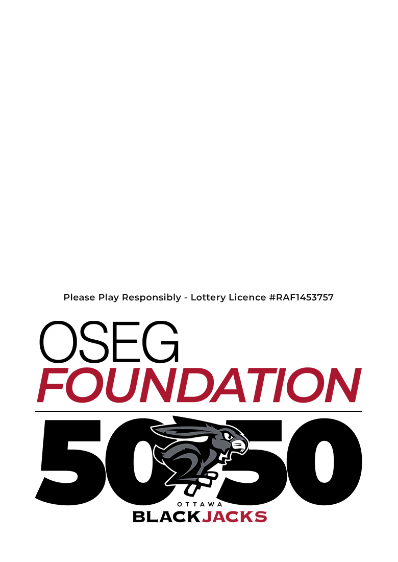 Your Ottawa BlackJacks 50/50 tickets support the OSEG Foundation in our mission of providing kids in our community with the opportunity to play, learn and develop through sport.
